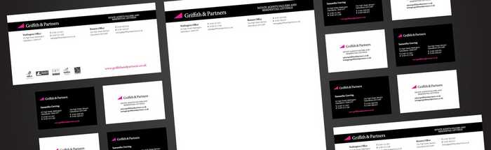 Following the companies newly designed branding created here at Durleigh. Griffith & Partners continue to push the logo design out across their relevant media. The first being the companies new set of stationery which included individual staff business cards, letterhead and a compliments slip. The stationery’s would utilize the same colours ways and fonts used in the logo, helping to enforce the companies new brand.