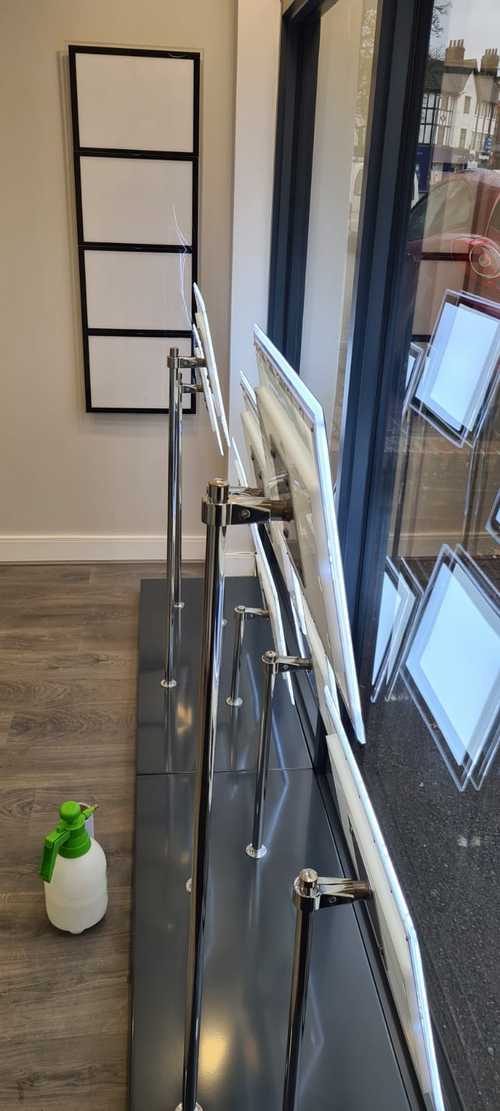The Tate Display is a random mix of premium high bright LED poster display pockets freestanding on a base which in this case perfectly matched the new window frame colour.