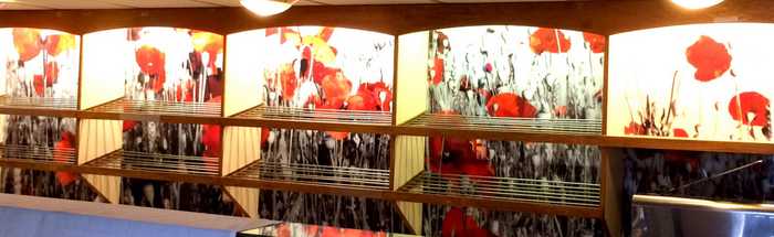 Maisey’s have recently received a reverse printed ‘Poppies’ acrylic splash back wall designed for their specific needs. Durleigh have an ever growing library of imagery for clients that want to create an atmospheric wall that reflects their taste, products or brand.